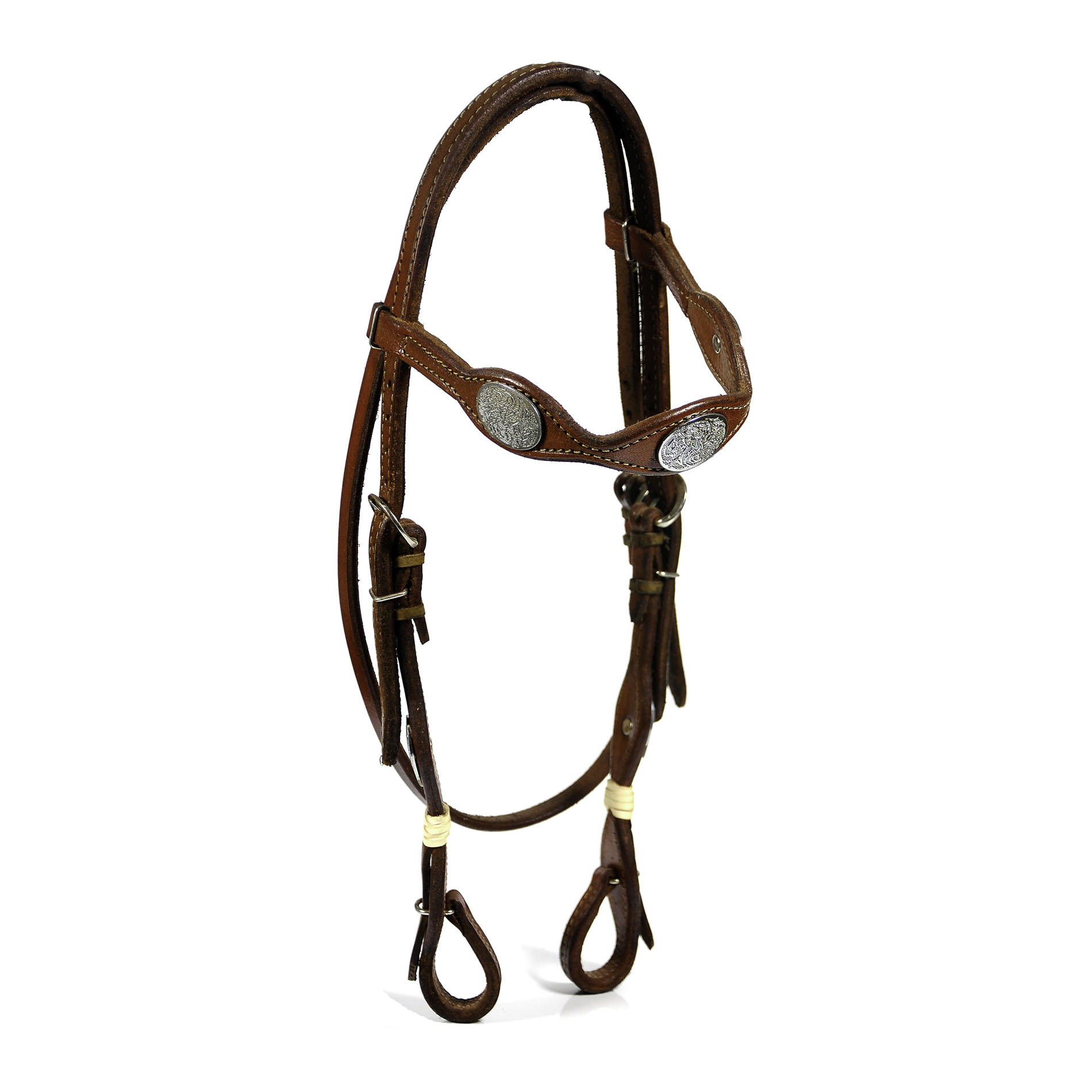Trabalhado em sola natural,com ferragens em metal com testeira e pés charroados em material sintético para maior durabilidade .