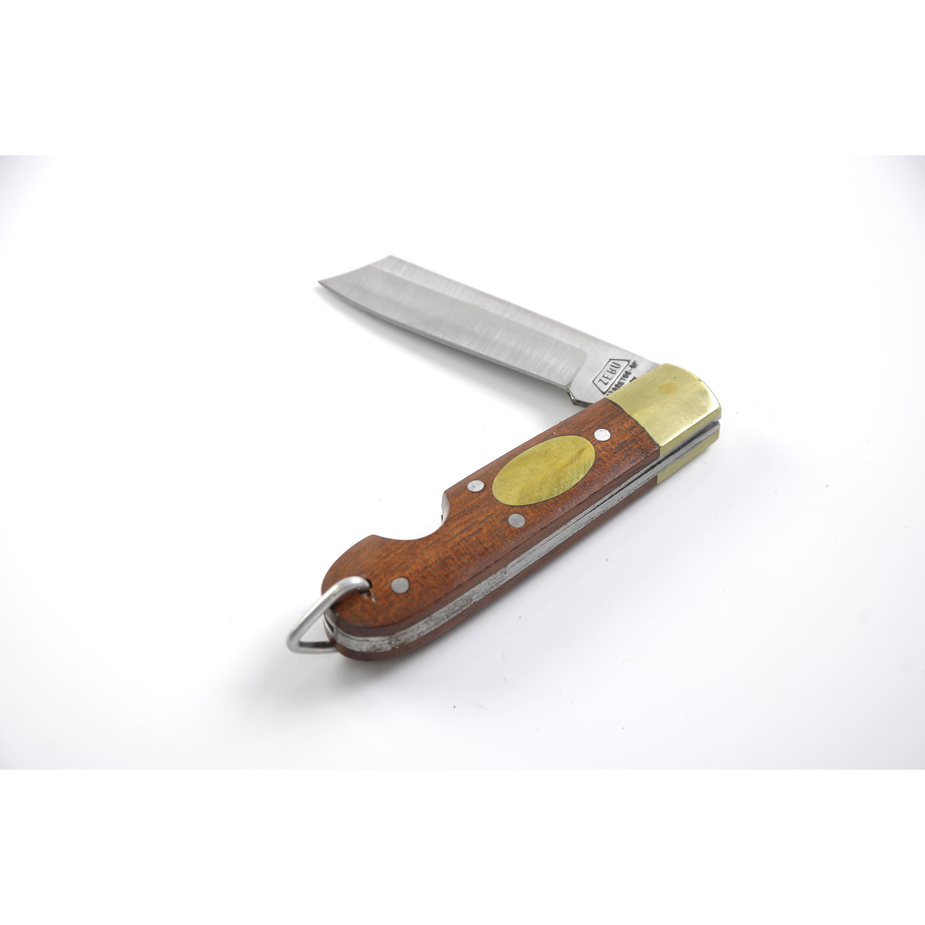 Canivete em aço inox polido,com cabo de madeira,para uso geral.Marca Zebu,de ótimo acabamento.