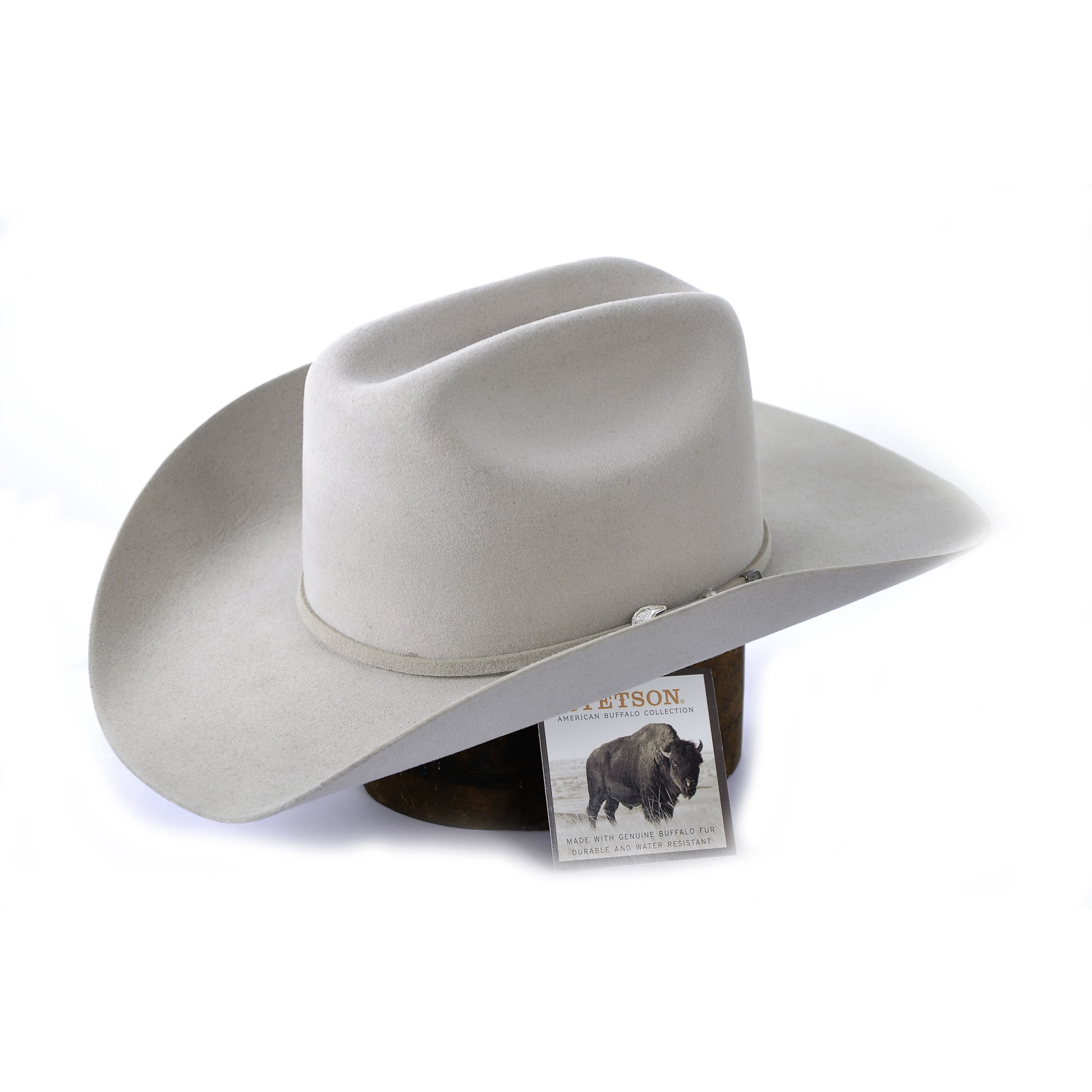 Chapéu Stetson americano,em pelo de búfalo original,resistente à água.Produto de grande durabilidade e acabamento,com carneira de couro e forrado em tecido.Aba de 10,0 cm