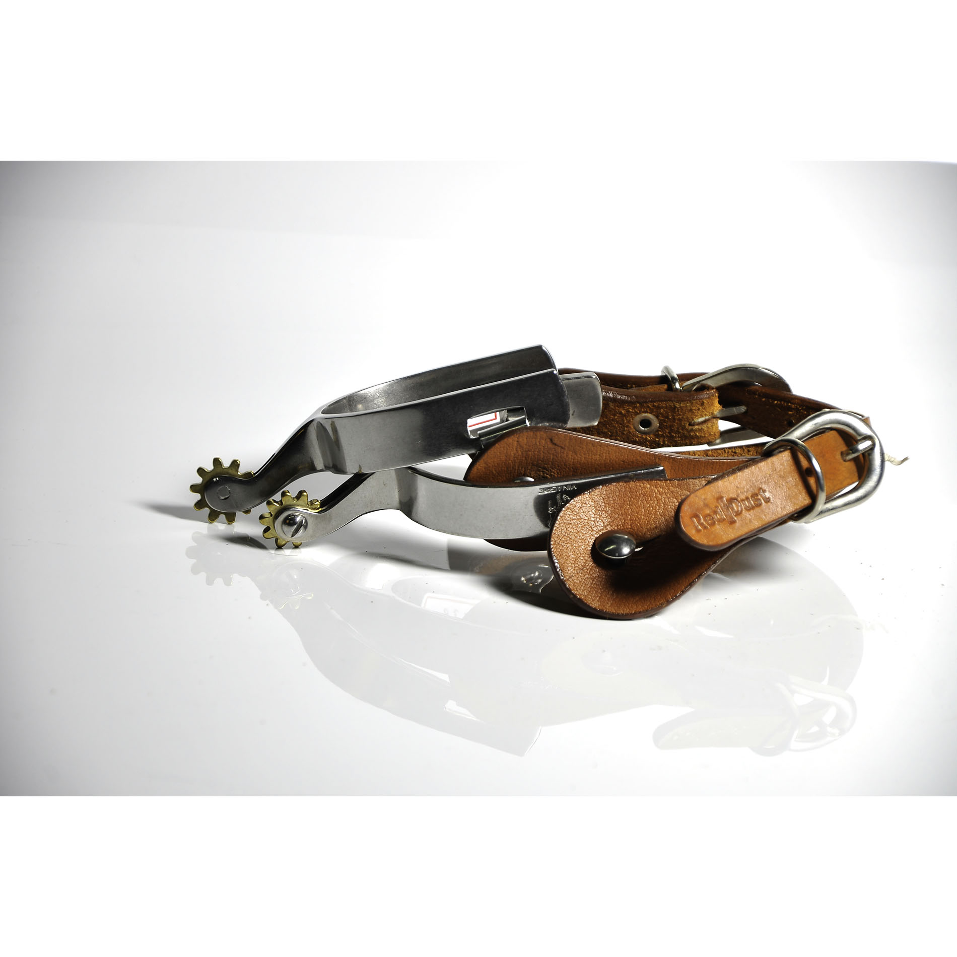 Esporas modelo quarto de milha,larga, em aço inox,lisa.De rosetas maiores,já com correias reforçadas Paul Western