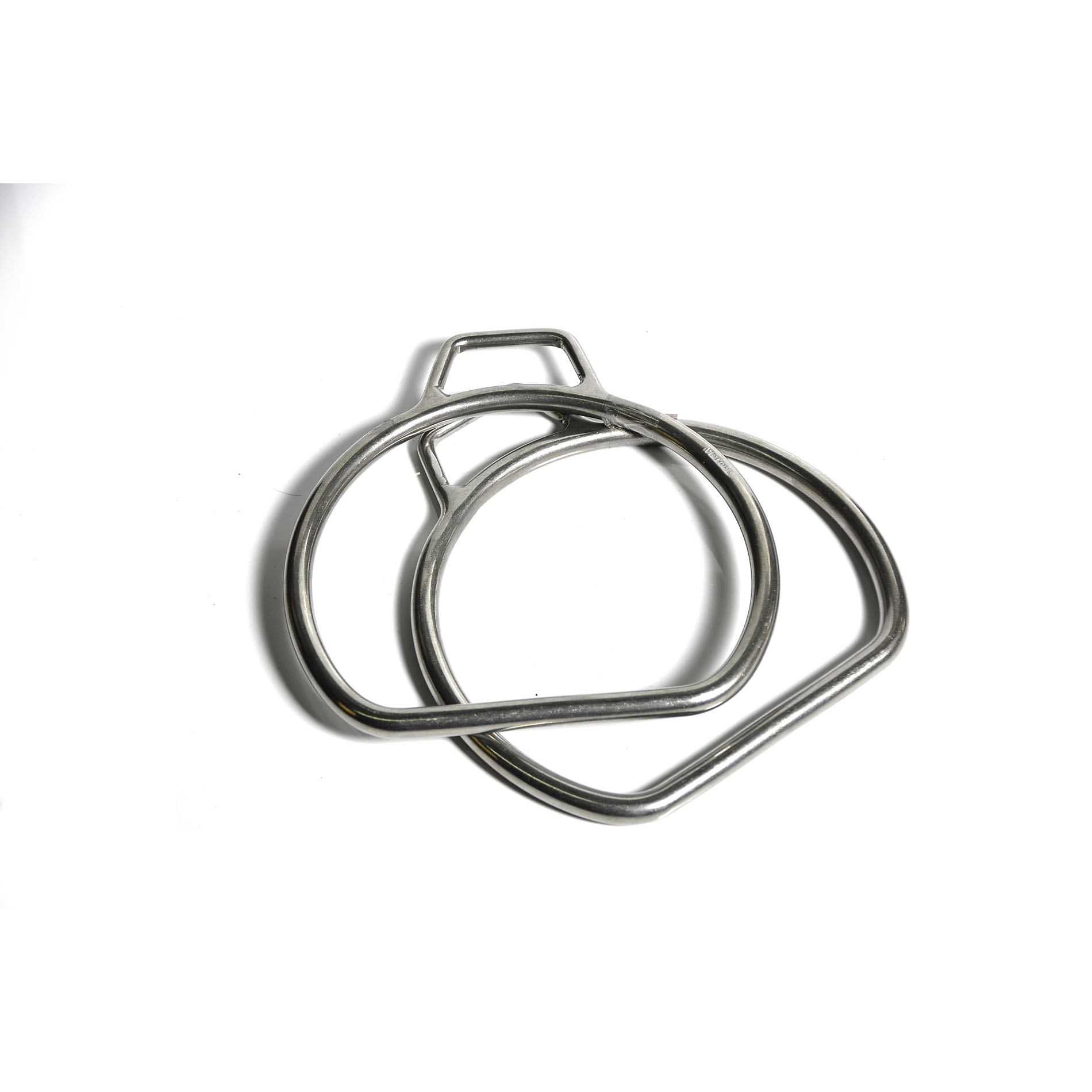 Estribos em aço inox polido.De arame liso de 8 mm,formato achatado, com alças.