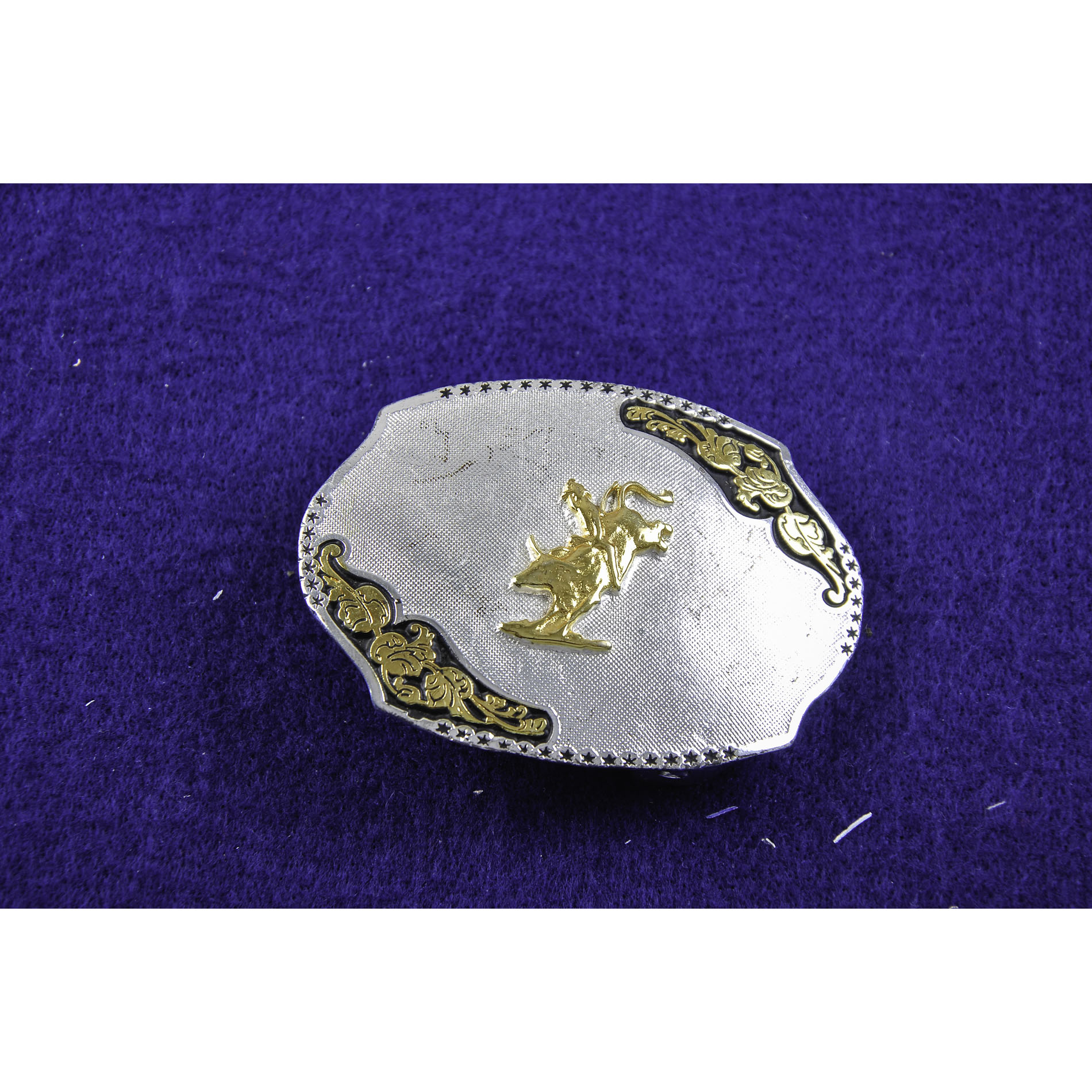 Fivela country em banho prata,modelo montaria em touro.De fino acabamento,comprimento de 7,0 cm.Para cintos country de largura padrão.