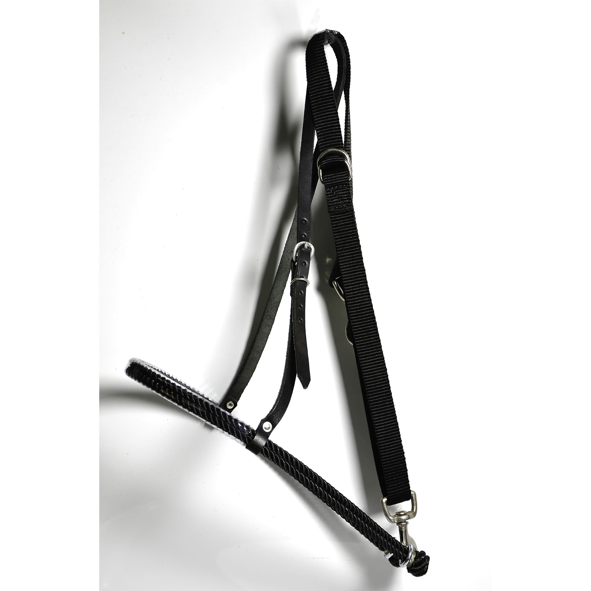 Produzida em corda torcida americana,reforçada com couro crú.Cabo em polipropileno de alta durabilidade, com mosquetão de metal.