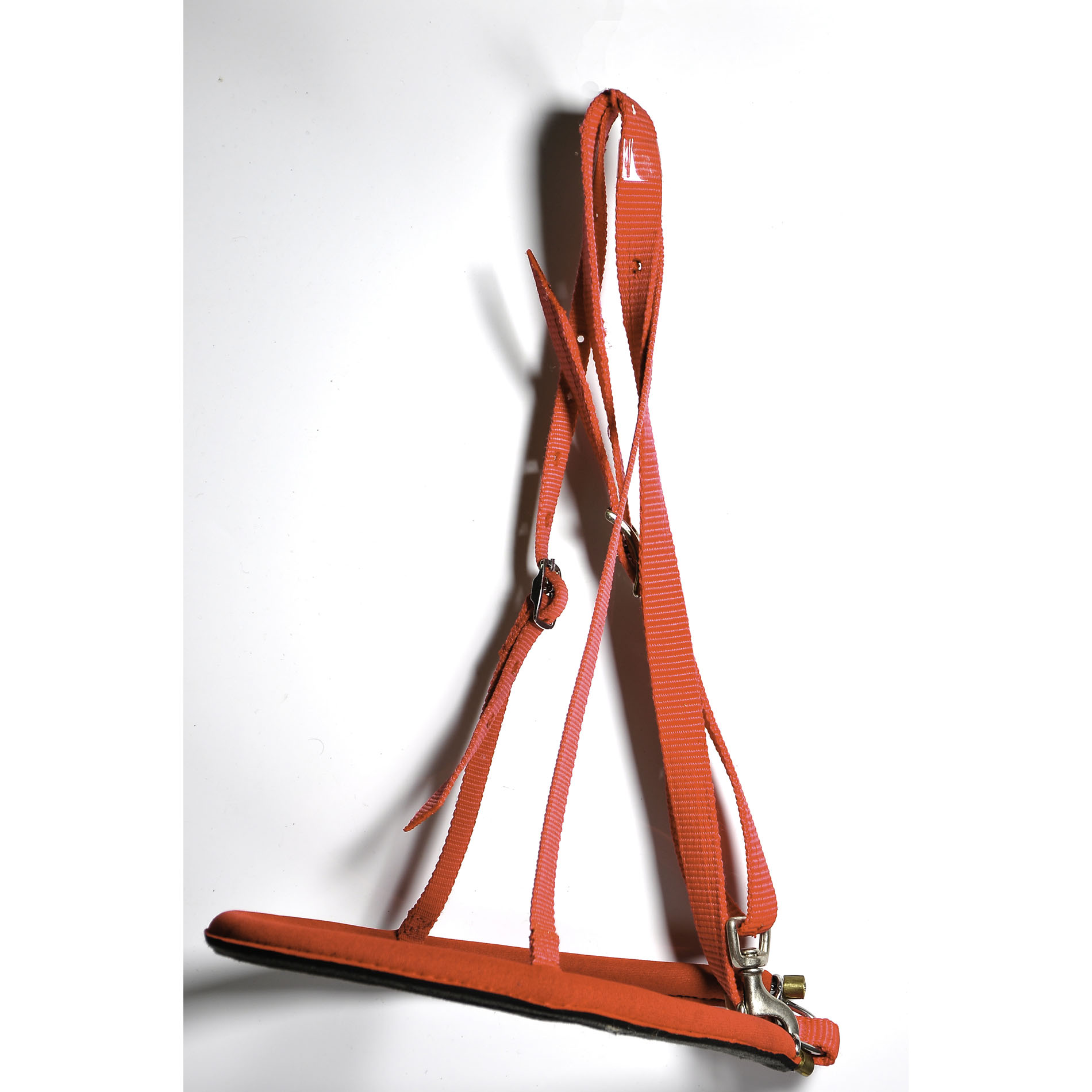 Produzida em cabo de aço encapado em neoprene,para excelente durabilidade e conforto para o animal.Cabeçada e cabo feitos de fita (pp).Mosquetão do cabo em metal.