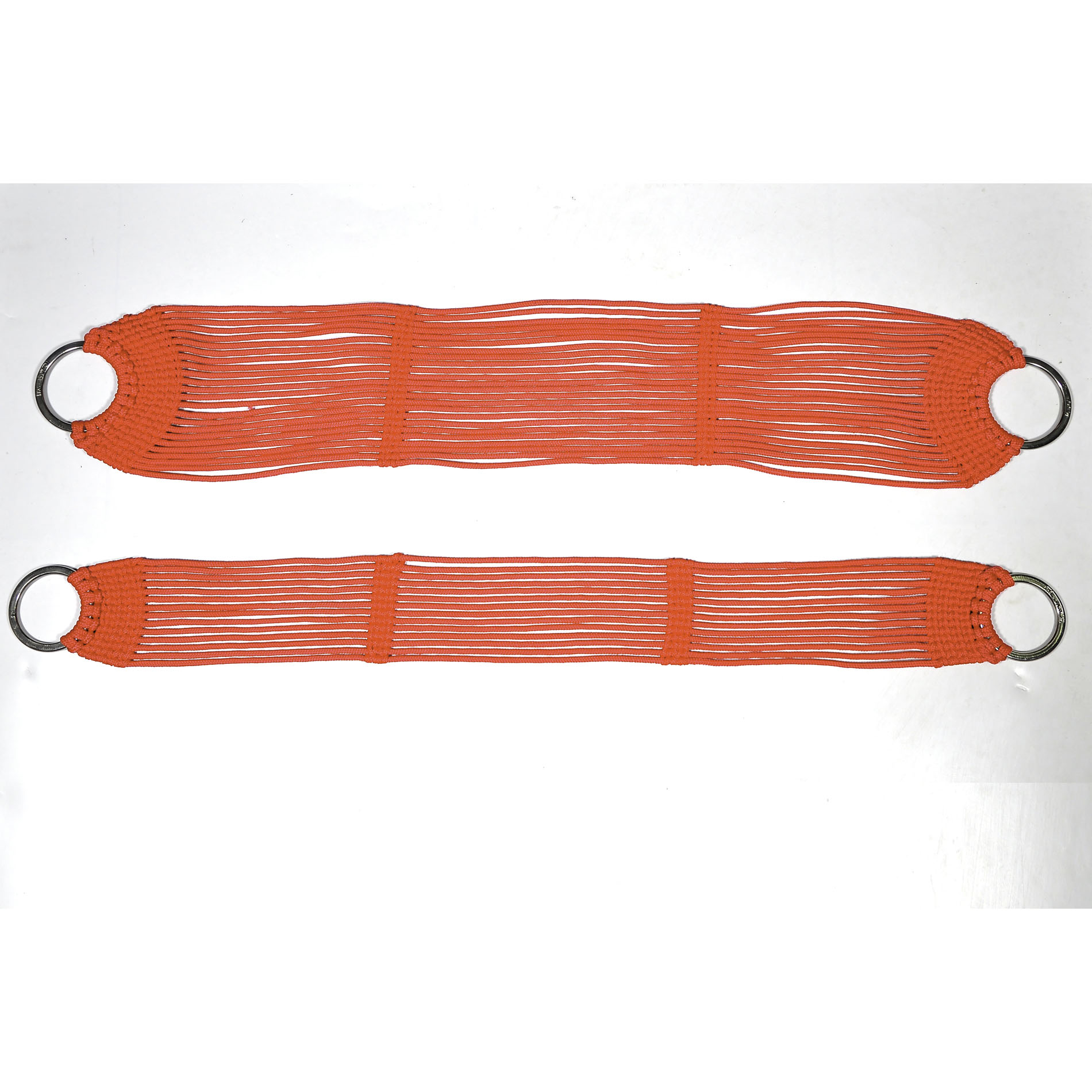 Produto feito em corda (pp) polipropileno , altamente durável, com argolas em aço inox. Vendida em pares (dianteira e trazeira)