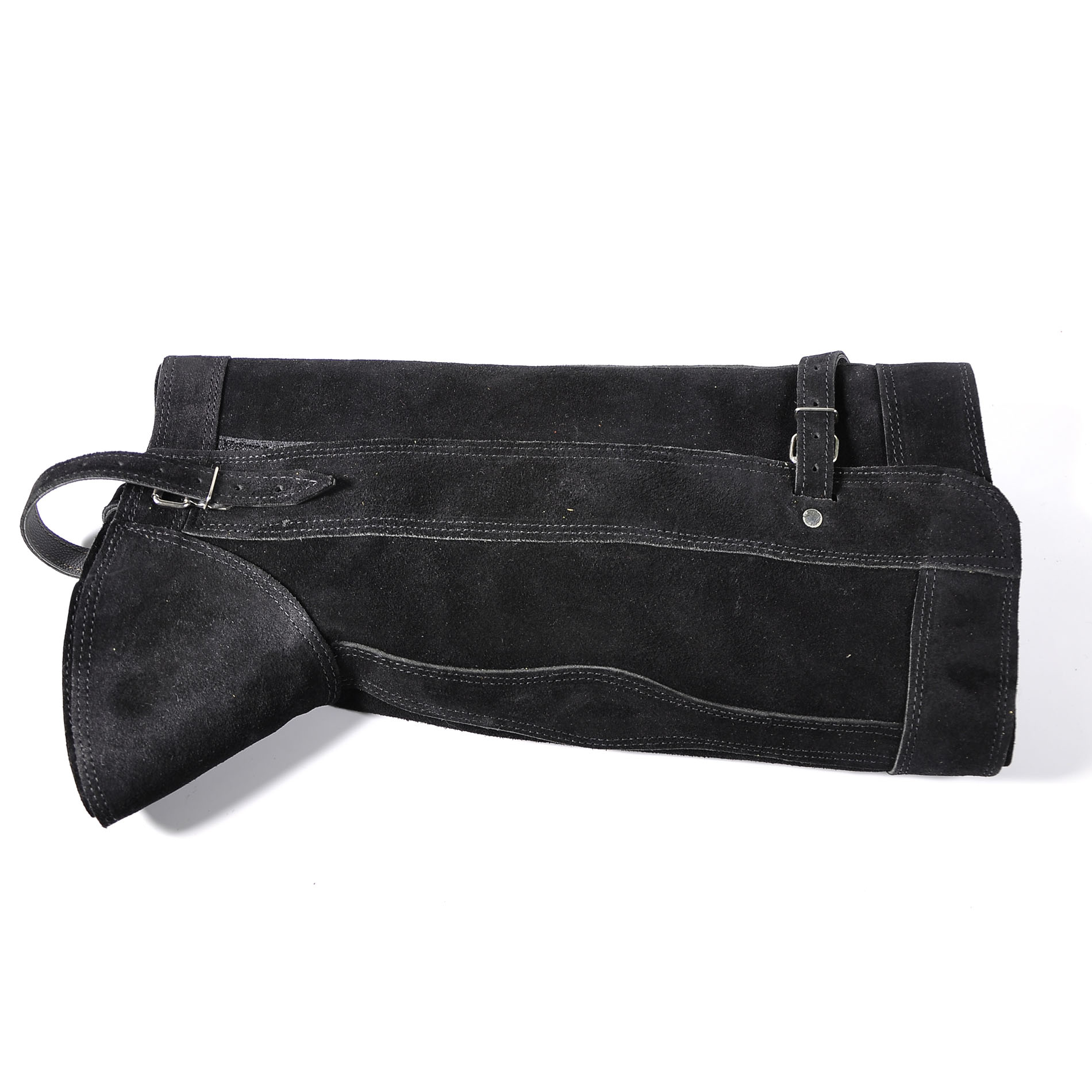 Perneira em couro camurça ,de ótima durabilidade e conforto.Fechamento por correia superior e lateral em velcro. Com reforço externo contra suor.