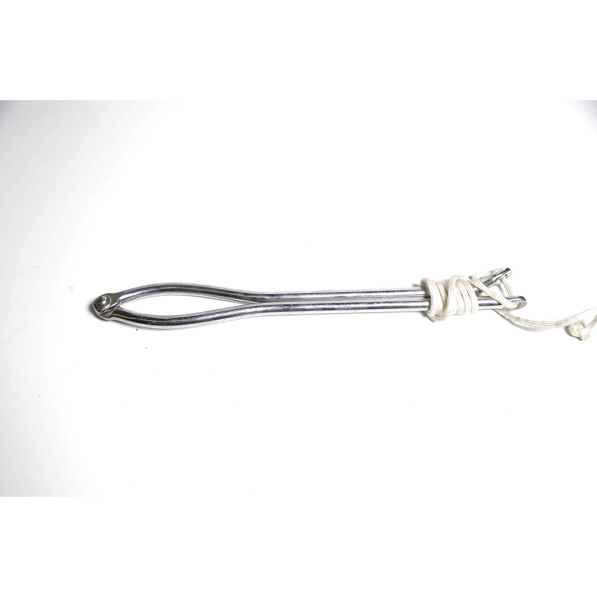 Pito em aço carbono cromado,com cordinha,para contenção animal.