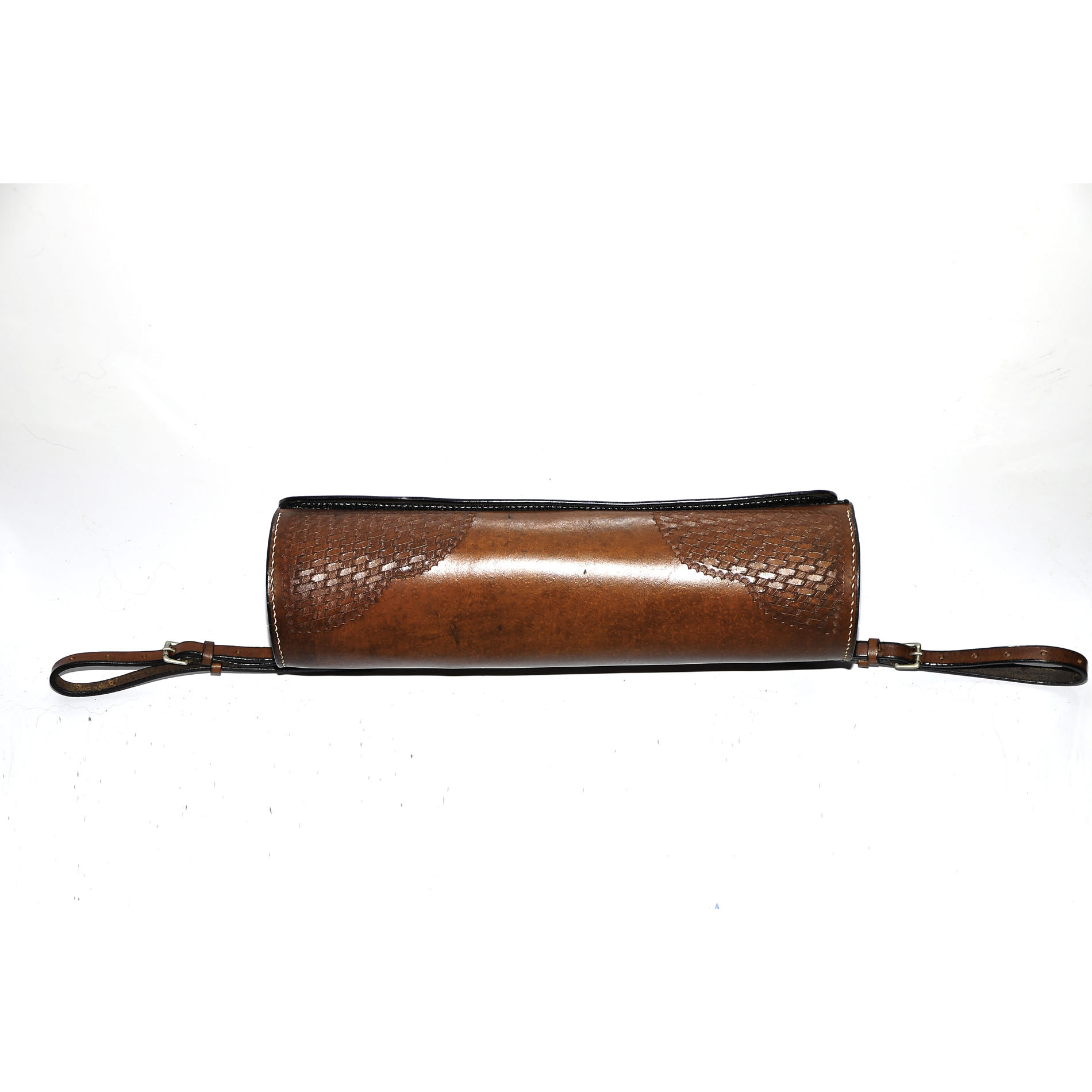 Produto confeccionado em couro de búfalo, oleado em mocotó.Fino acabamento, apropriado para capas plásticas ou para litro de bebida mais copos.