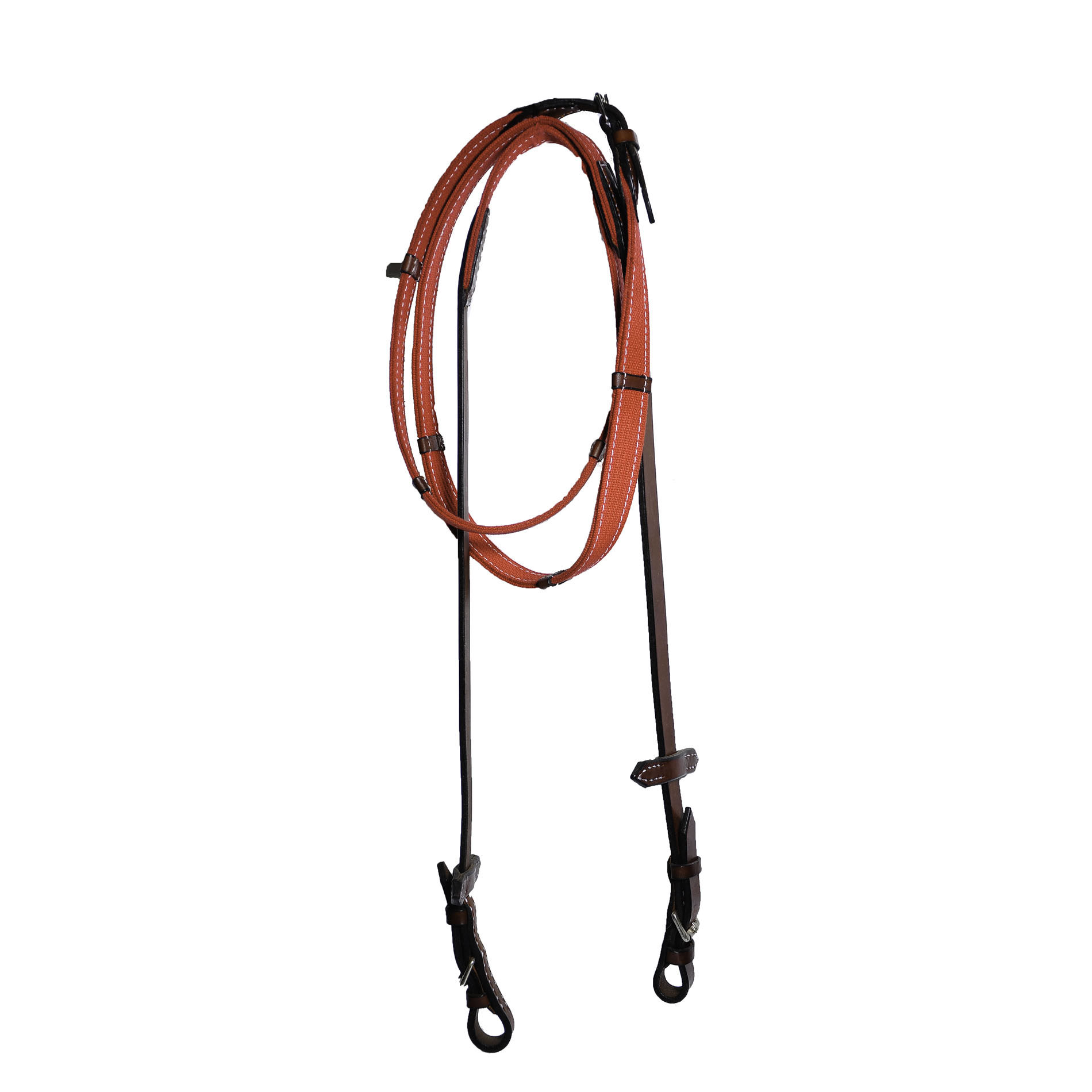 Rédea hípica ,confeccionada em cadarço de algodão com espaçadores em couro.