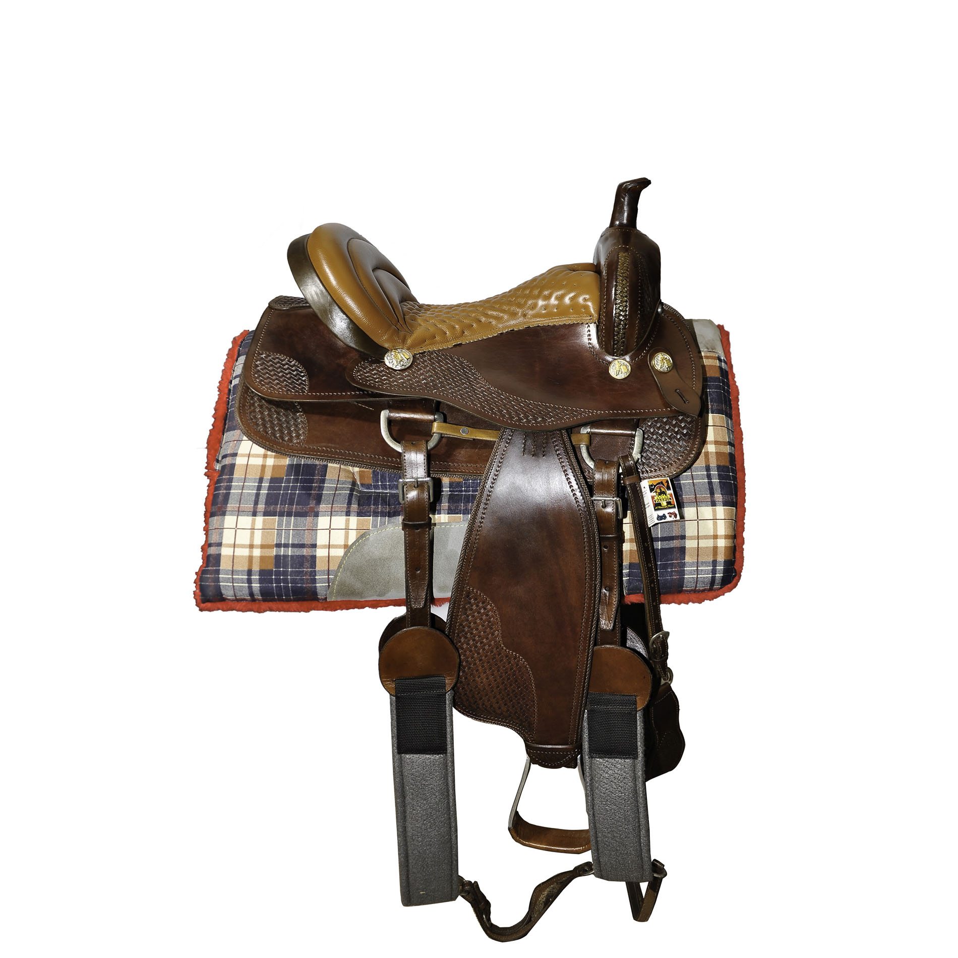 Sela para prova de laço(team roping),toda em couro natural,completamente pronta para uso.Com assento almofadado, de 15 polegadas,que traz conforto em provas e também em cavalgadas.