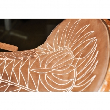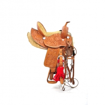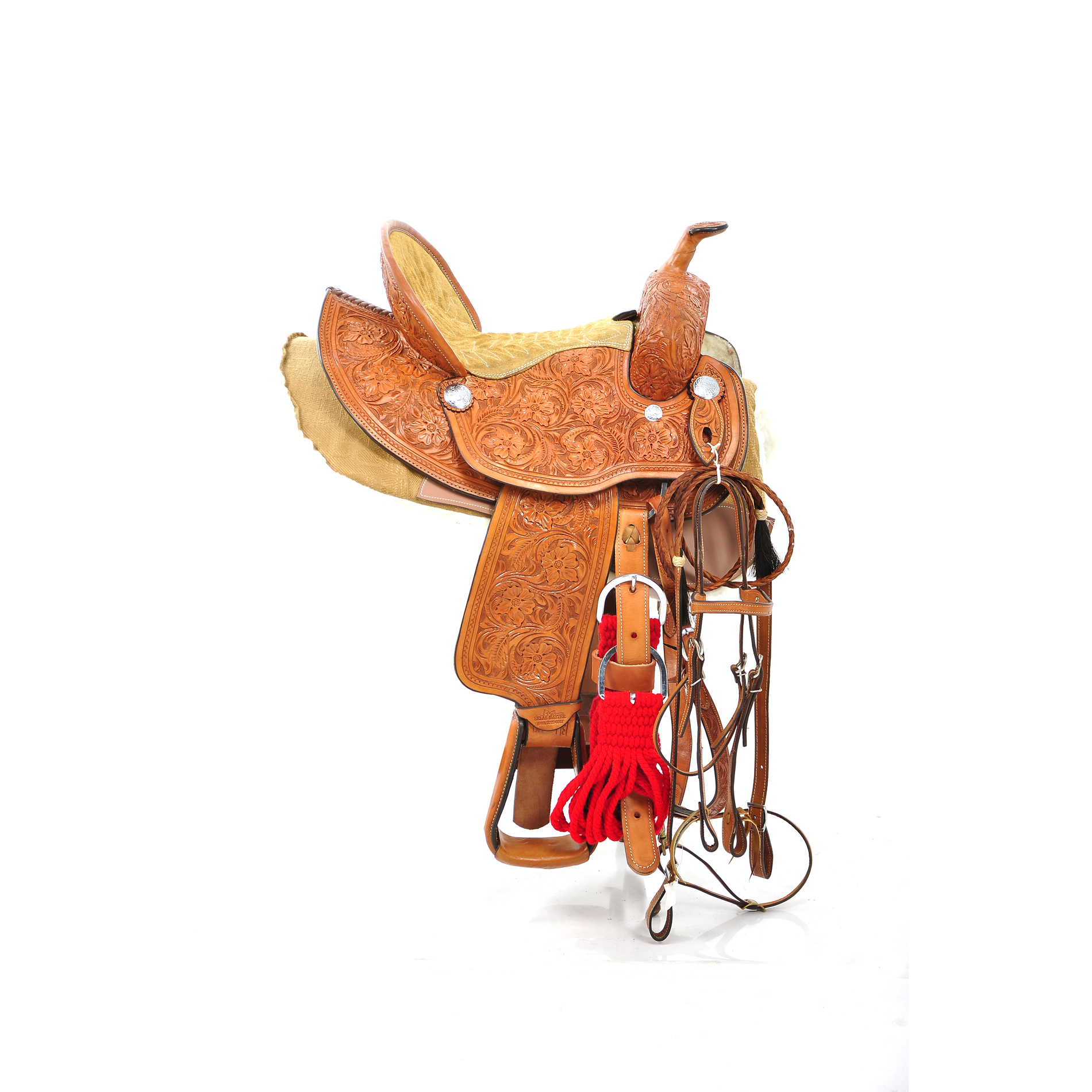 Sela profissional para tambor e baliza.Confeccionada em sola natural,totalmente bordada,com assento de 15 polegadas e com manta de neoprene interna para absorver impacto.A sela vai completíssima para uso,com peitoral,freio inox ,manta apropriada, cabeçada e rédea trançada.