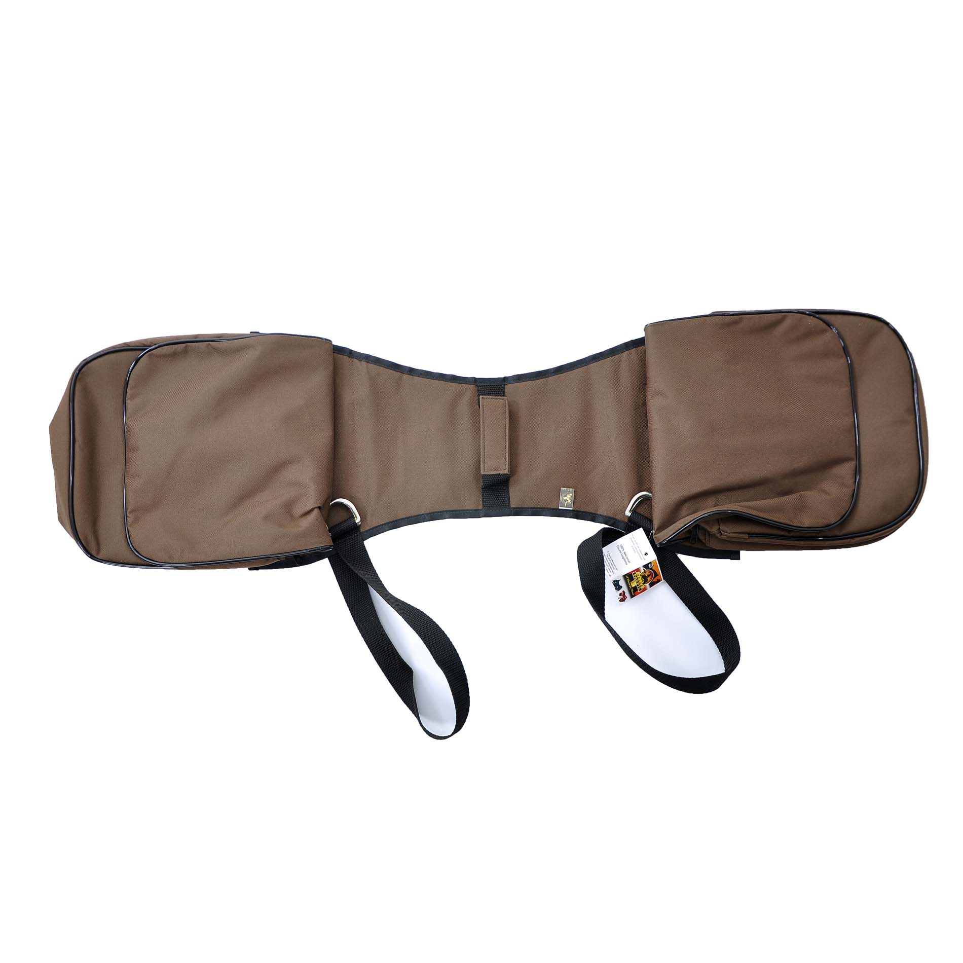 Tamanho aproximado de cada bolsa lateral de 26x26 cms.