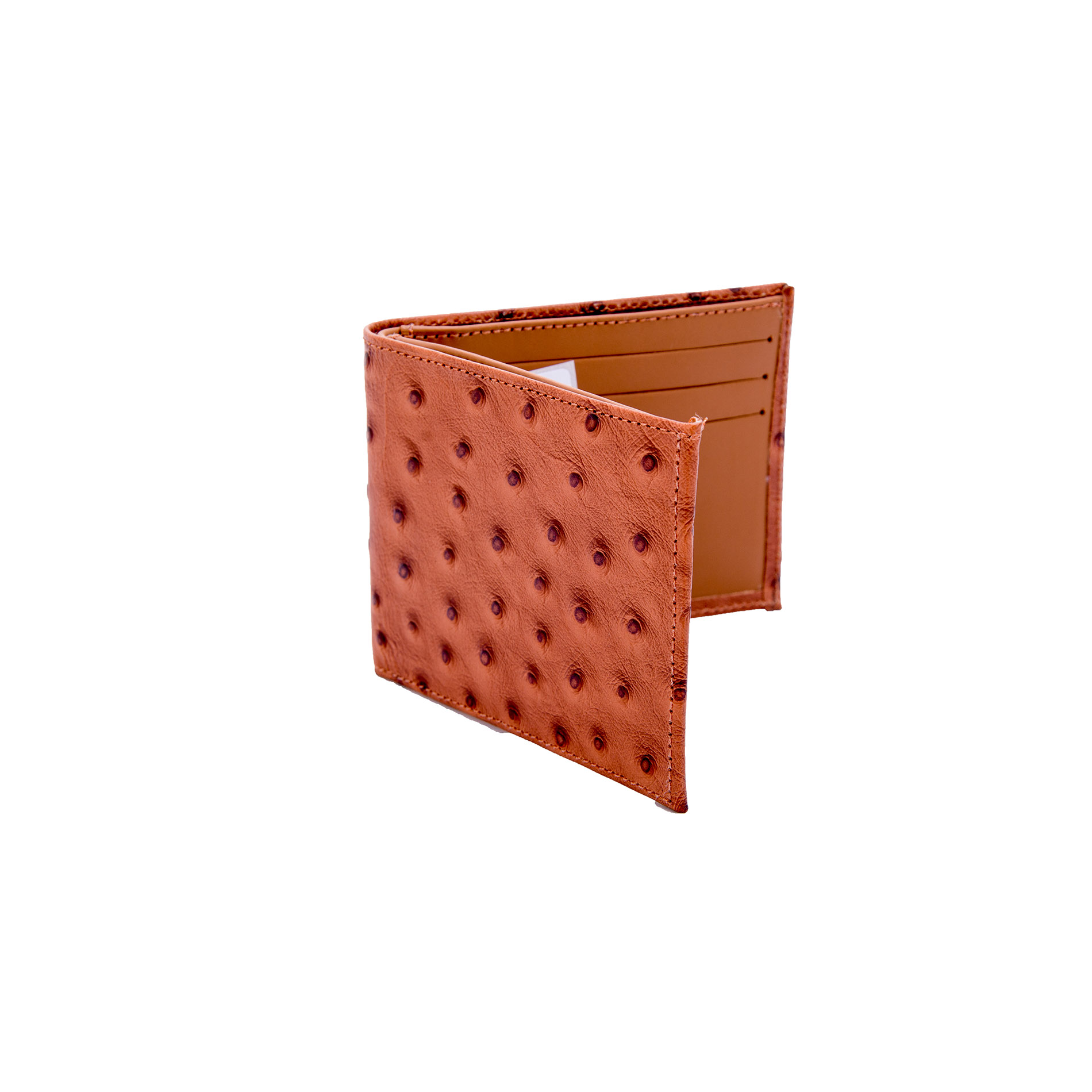Carteira importada do México, em couro cilindrado com estampa avestruz.Produto de tamanho reduzido, para uso como porta notas e porta cartões.Cor Havana