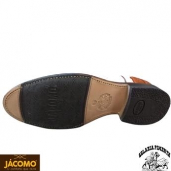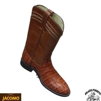 Bota da excelente marca Jácomo Boots, em couro de gado calandrado, com estampa Aligátor, de ótimo visual e acabamento e extrema durabilidade. Solado em couro, com látex anti-derrapante.